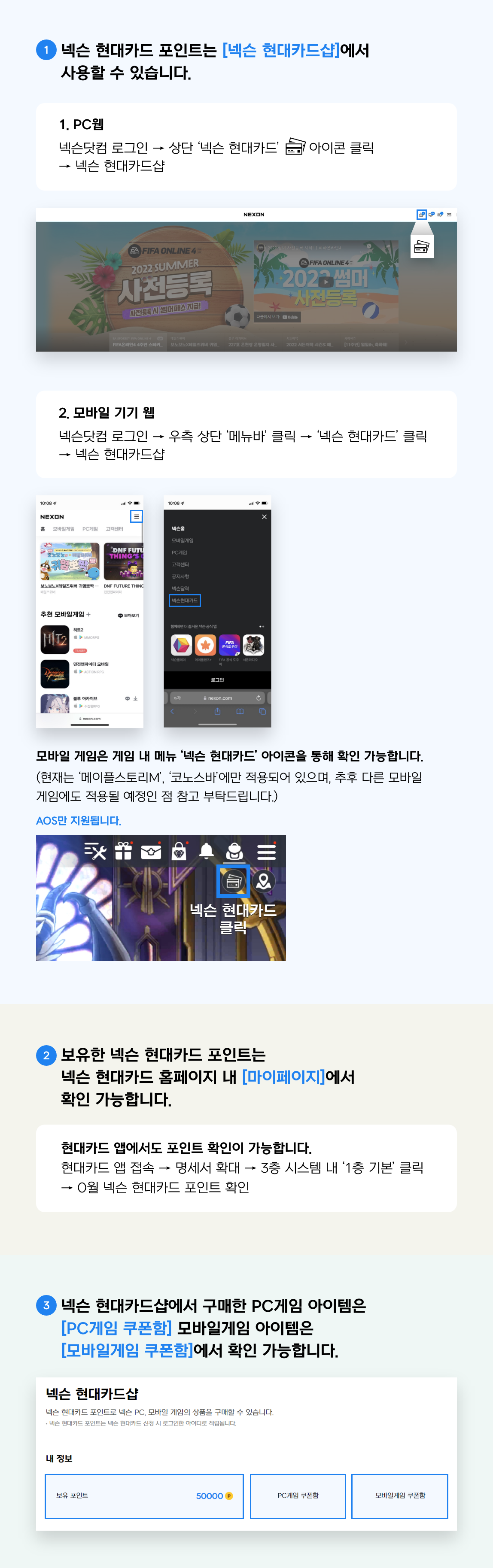 1) 넥슨 현대카드 포인트는 [넥슨 현대카드샵]에서 사용할 수 있습니다.